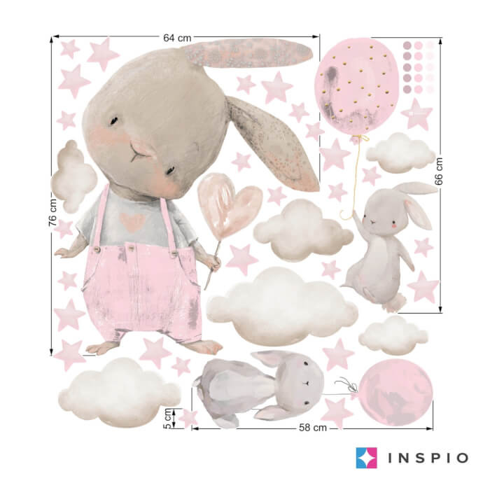 Inspi Akvarell falmatricák - Világos rózsaszín nyuszik