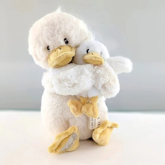 Használjátok a Mama Quack figurát a szeparációs szorongás enyhítésére! Mutasd meg a gyermekednek hogyan tartja a nagy kacsa a kicsit így vizuálisan is megérti hogy te is mindig ott vagy neki és vigyázol rá még ha épp alszik is.