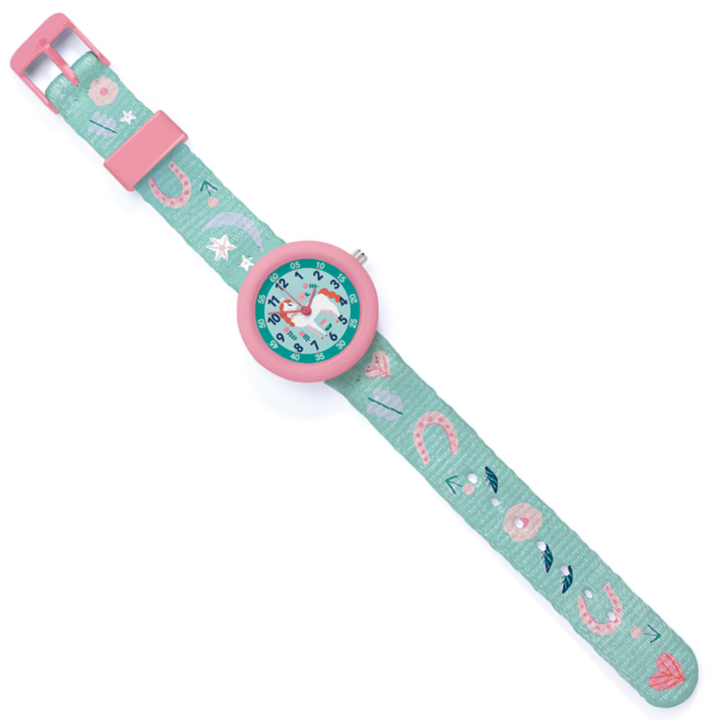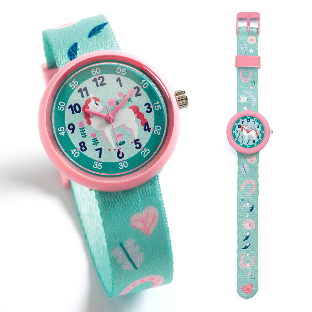 Gyermekkaróra, japán óraszerkezettel, 2 év garanciával, vízcseppálló kivitelben a Djeco művészi tervezésében.