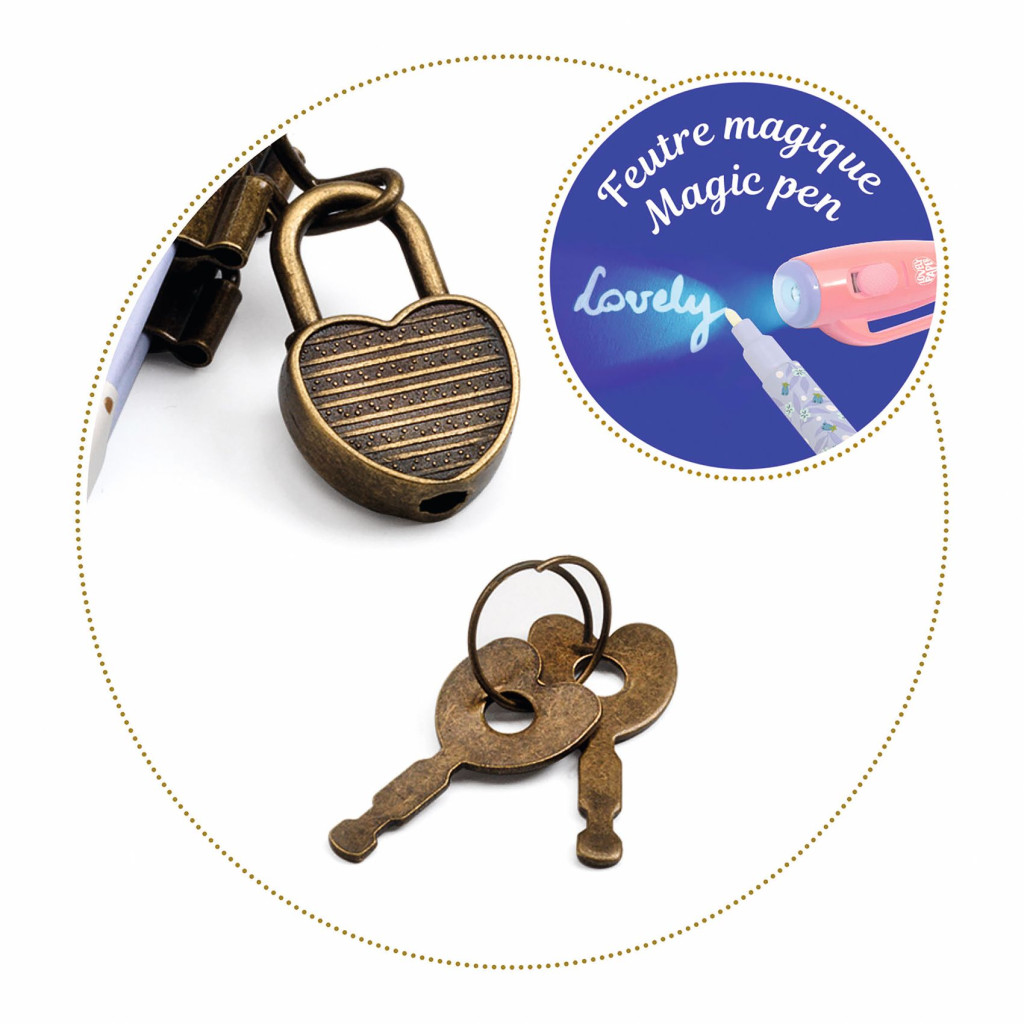 A Djeco gondolt a biztonságra, ezért a lakathoz 2 darab kulcsot mellékeltek. Ha az egyik elveszne, a másodikkal továbbra is nyitható marad a napló. Ez egy egyszerűbb zárszerkezet, amely a kíváncsi testvérek ellen véd, de végszükség esetén felnőtt segítséggel kinyitható.