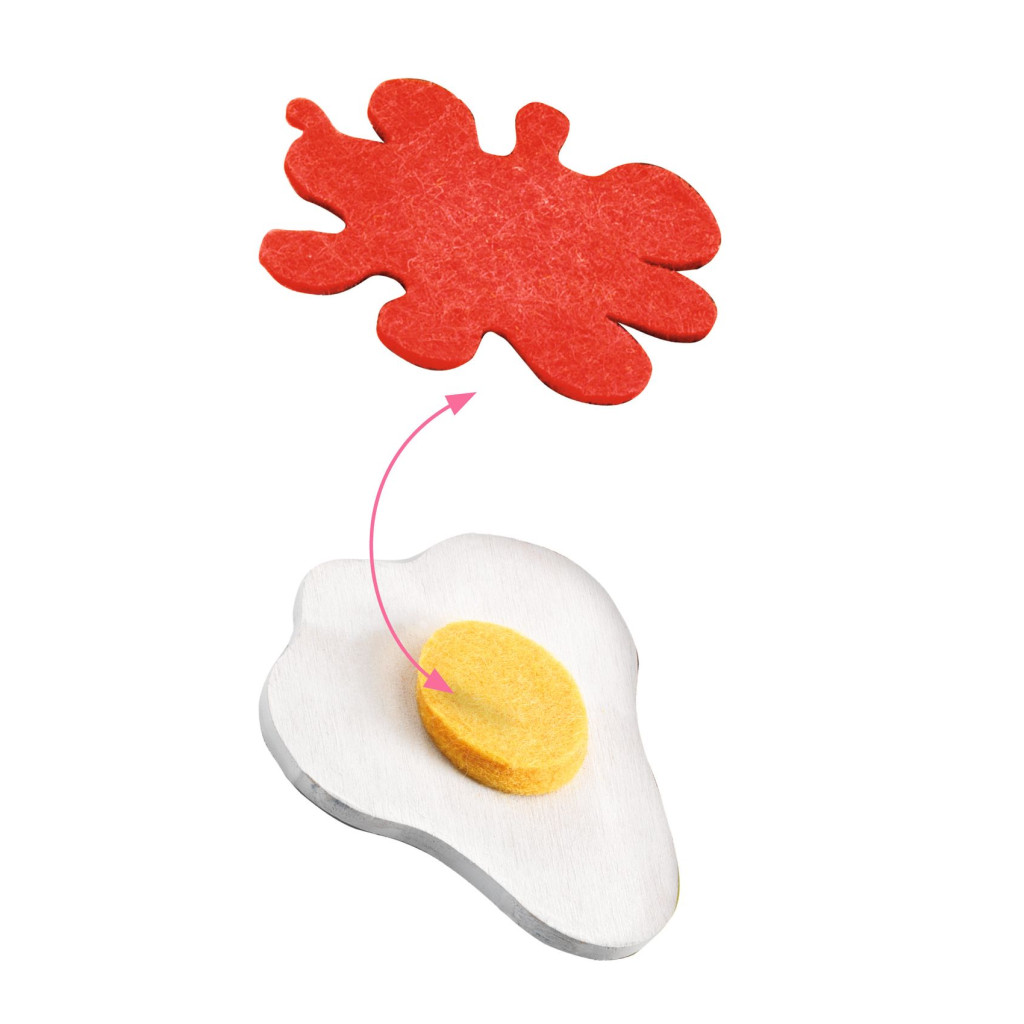 A Djeco prémium minőségű fát, textilt és puha filc anyagot kombinál ebben a készletben. Ez az anyaghasználat nemcsak rendkívül tartóssá teszi a játékot, de a különböző textúrák (kemény fa, puha filc) izgalmas tapintási élményt is nyújtanak, ami sokkal igényesebb a hagyományos műanyag játékoknál.