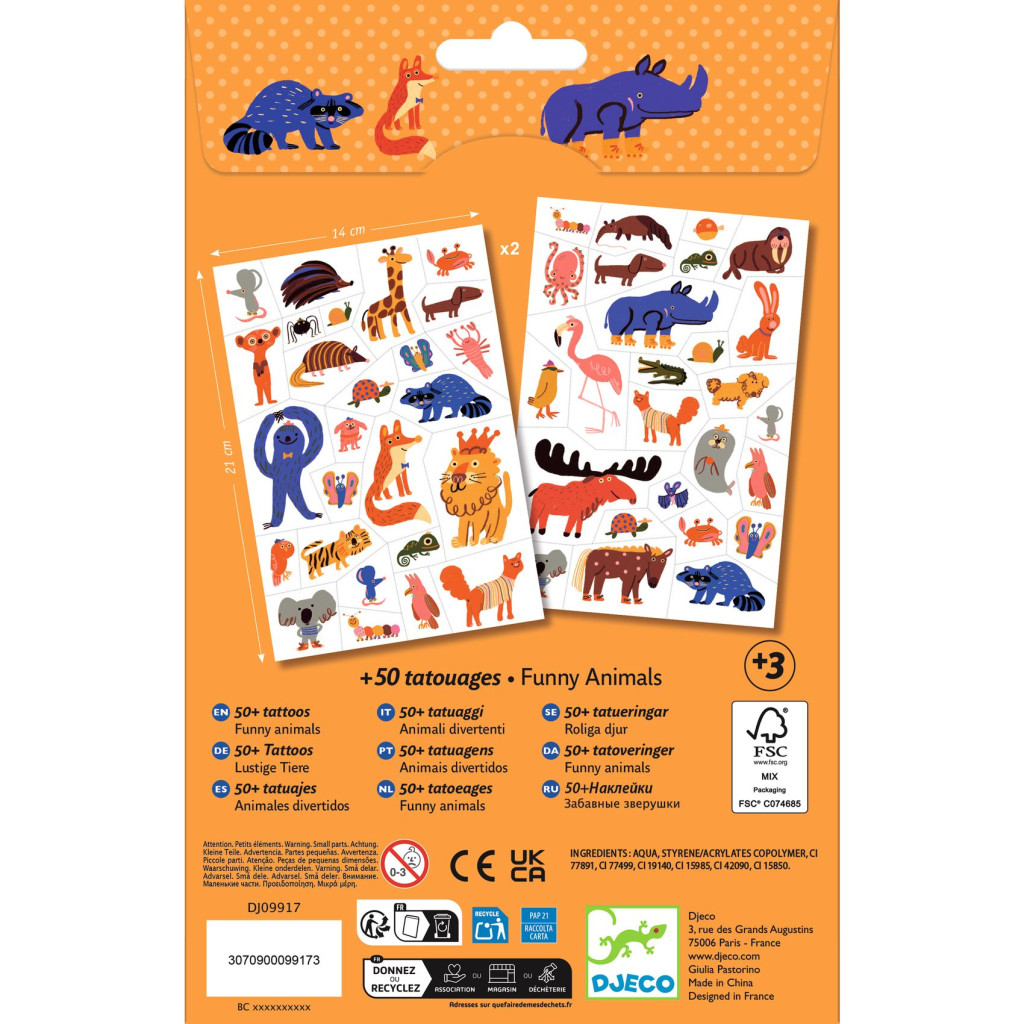 Djeco Tetováló matricák – Vicces Állatok – Mosoly az apró karokon