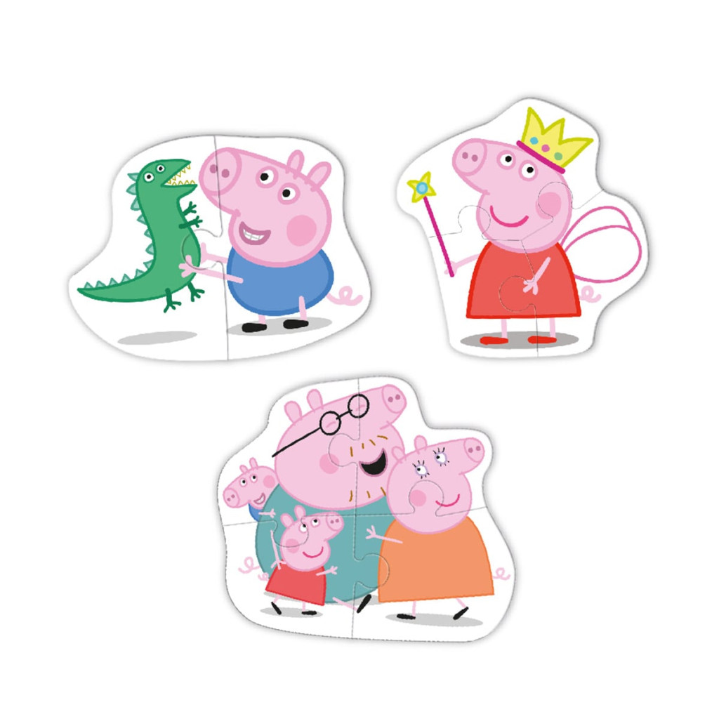 Kezdjétek a legrövidebb úttal a sikerhez: válogassátok ki a George-os kép elemeit és rakjátok ki először a 2 darabos puzzle-t! Ez azonnali pozitív megerősítést ad a kicsinek és meghozza a kedvét a 3 és 4 darabos Peppa-családos képek összeállításához is.