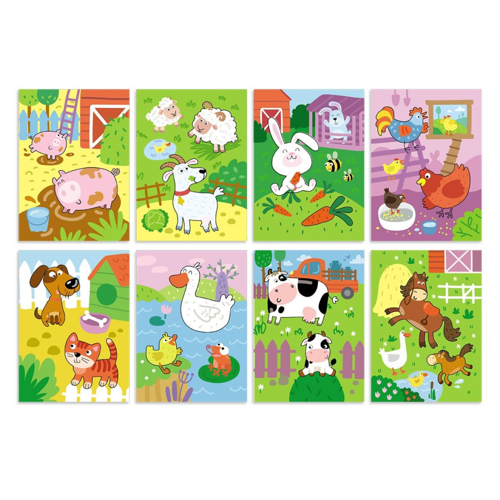 • pipa Újrahasználható varázslat: Ahogy a lapok megszáradnak, a színek eltűnnek, így a tanya állatai végtelen alkalommal újra felfedezhetők.
