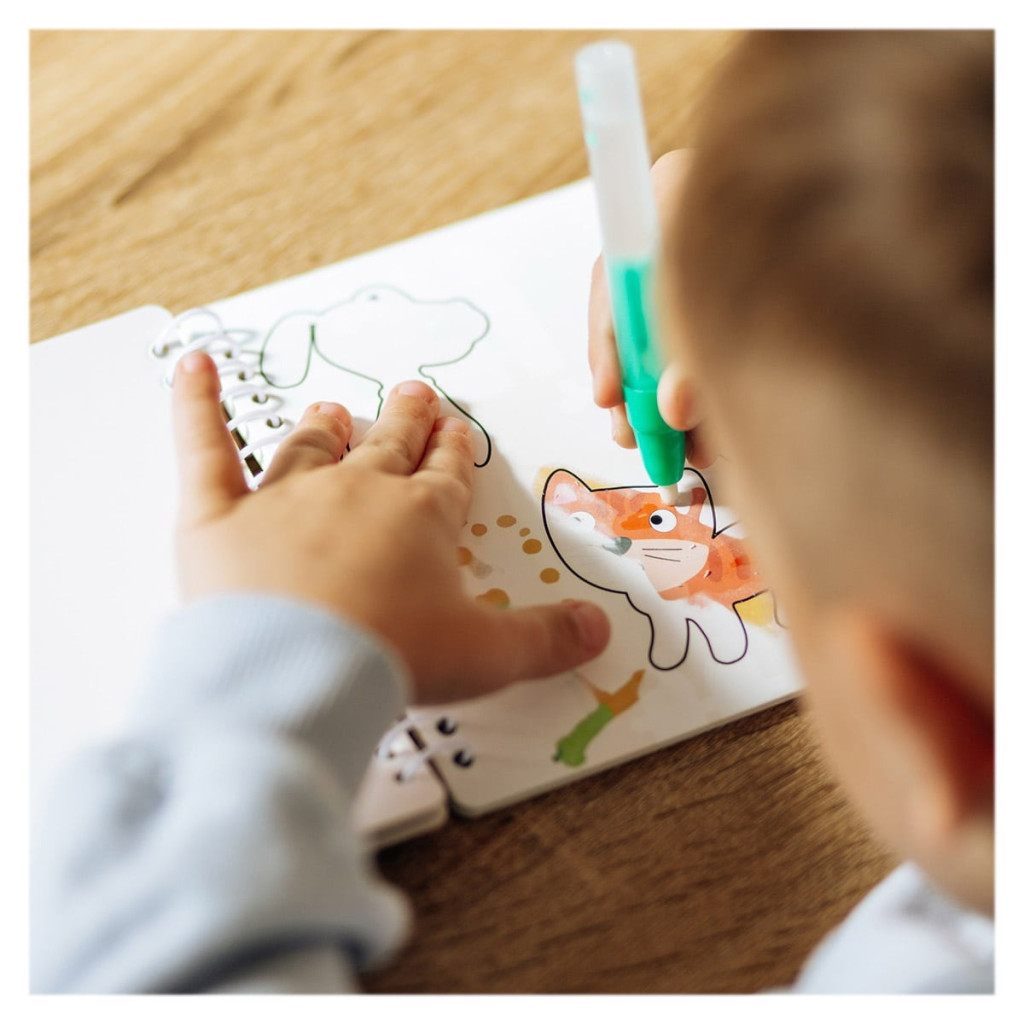 Ha a gyermeked épp a színeket tanulja, nevezzétek meg együtt az előbukkanó állatokat és árnyalatokat! Mivel a víz hatására élénk színek jelennek meg, sokkal könnyebben rögzülnek a fogalmak a vizuális élménynek köszönhetően.