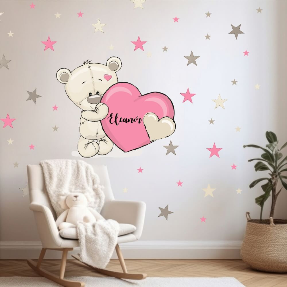 névvel ellátott macis falmatrica gyerekszobába. Személyre szabott matricák gyerekeknek.