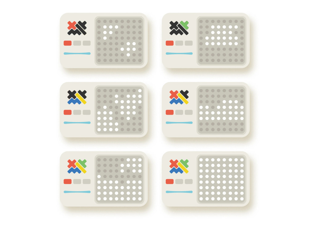 • A doboz tartalma: 1 db játékkonzol 64 LED ponttal és 16 db (4 különböző színű) üreges építőelem