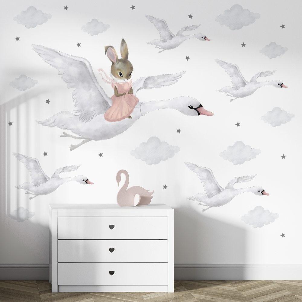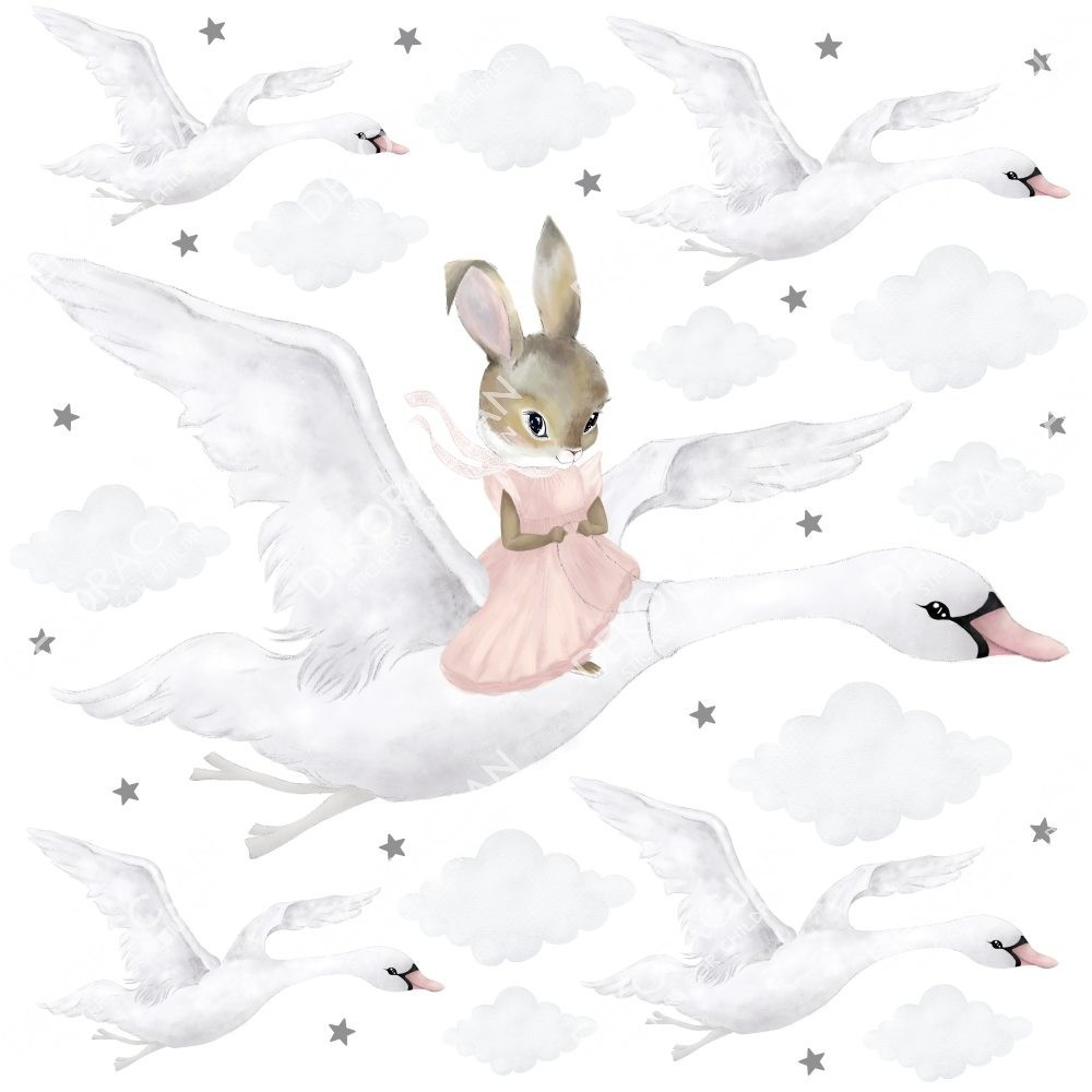 Gyerekszoba falmatrica - Nyuszi hattyún
