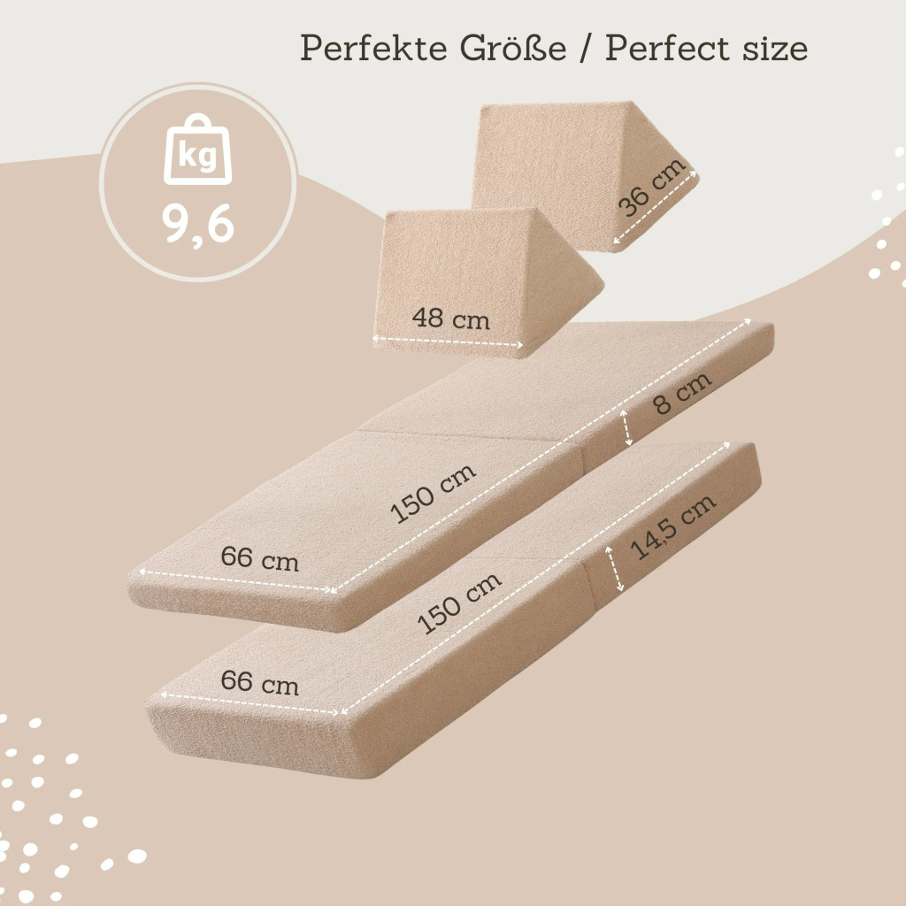 A Hakuna Matte Teddy bézs moduláris gyerekkanapé több mint bútor – egy gondosan megtervezett életstílus-elem, amely harmonikusan ötvözi a skandináv minimalizmust a gyermeki fantázia szabadságával. Ez a kivételes minőségű bútordarab nem csupán kiegészíti otthonát, hanem aktív résztvevője lesz családja mindennapjainak, legyen szó kreatív játékról, nyugodt pihenésről vagy meghitt családi pillanatokról.