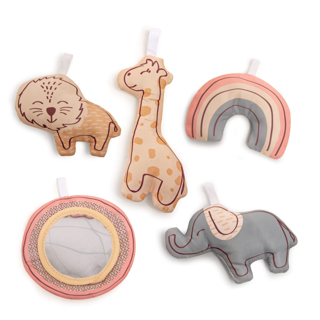 • Tartozékok: 4 db levehető készségfejlesztő függőjáték és 1 db felfedező tükör