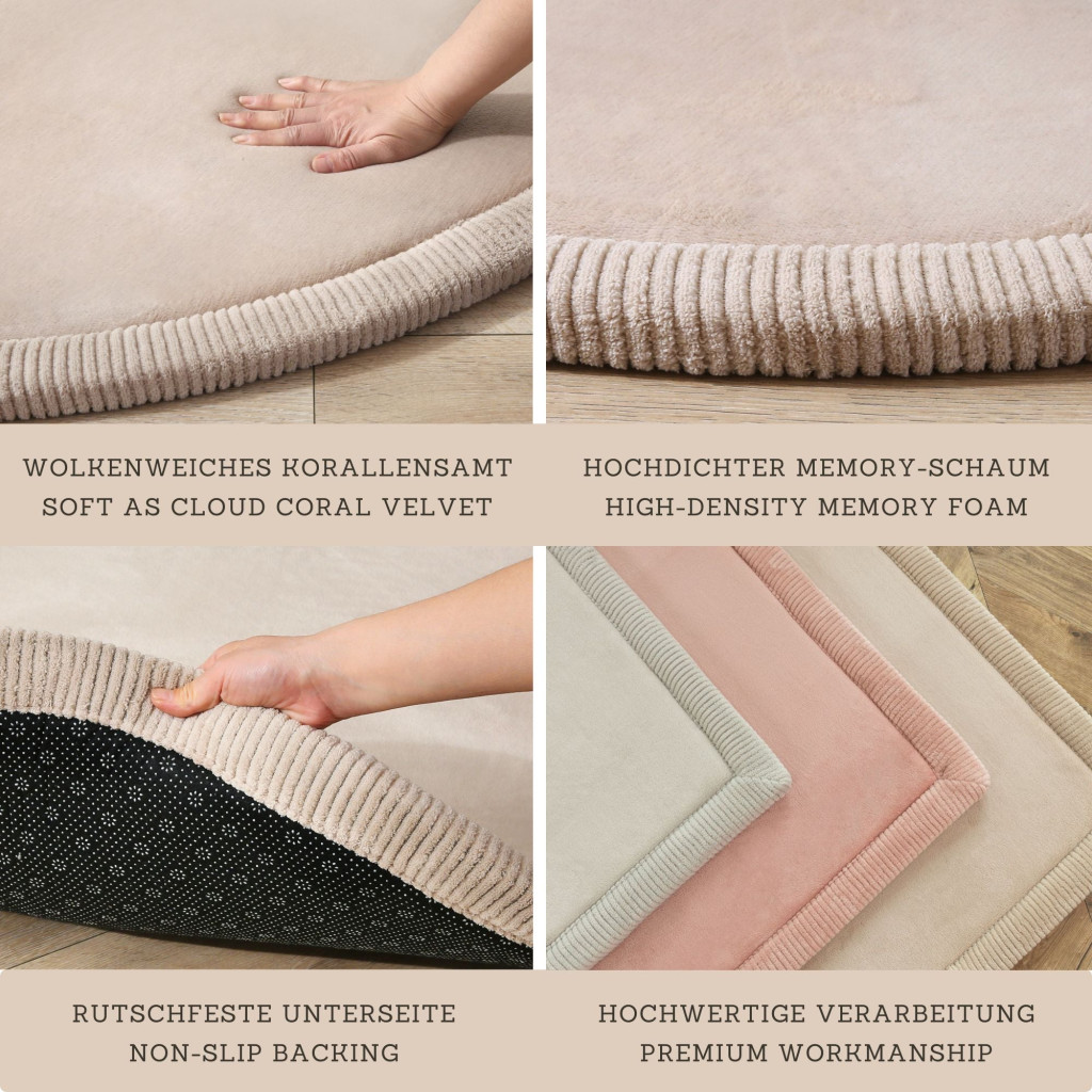 • Háromrétegű kényelem: Puha korallbársony felső réteg, rugalmas memóriahab középső réteg, és csúszásgátló hátlap a biztonságért.