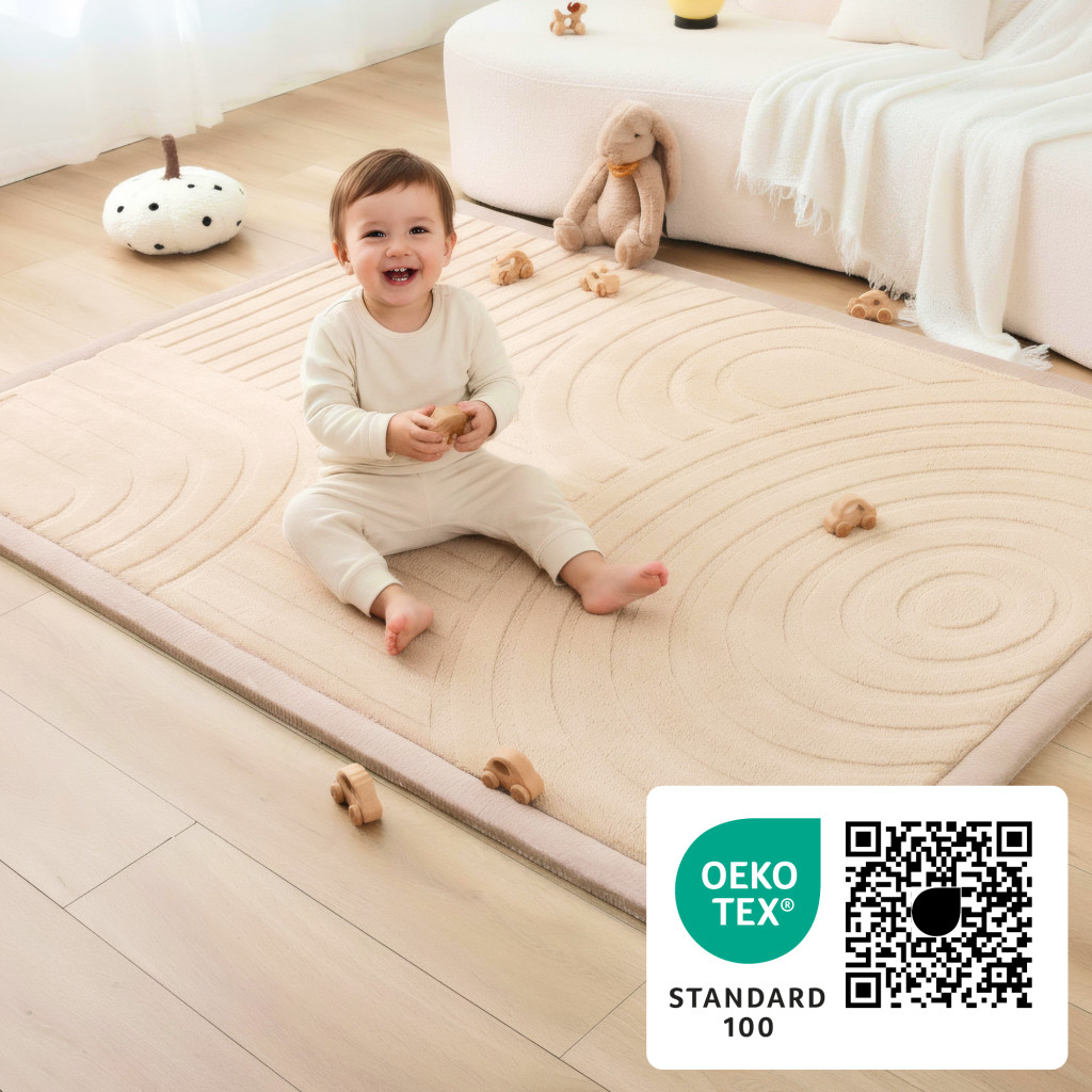 Ez a szőnyeg egyetlen, összefüggő darabból áll, így nem esik szét játék közben, és a résekbe sem tud bemenni a kosz. Esztétikailag sokkal elegánsabb, mint egy színes puzzle: úgy néz ki, mint egy valódi prémium szőnyeg, miközben megtartja a játszószőnyegek puhaságát.