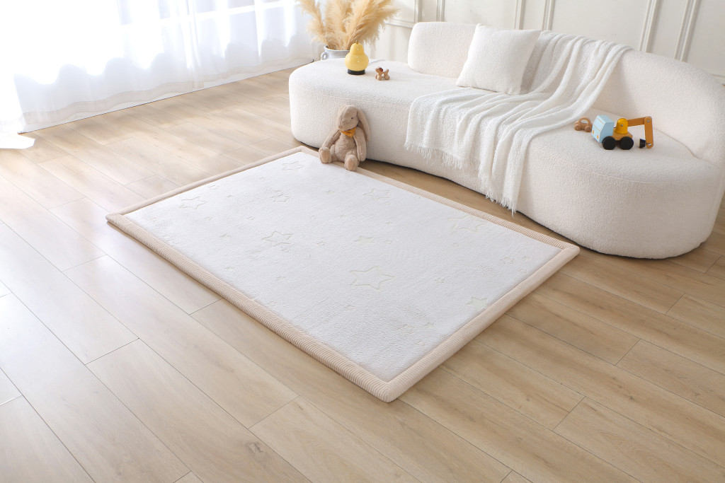 • Bársonyos érintés: A korallbársony felület hipoallergén, nem szöszölődik, és olyan puha, akár egy felhő – tökéletes a kúszáshoz és a mezítlábas játékhoz.