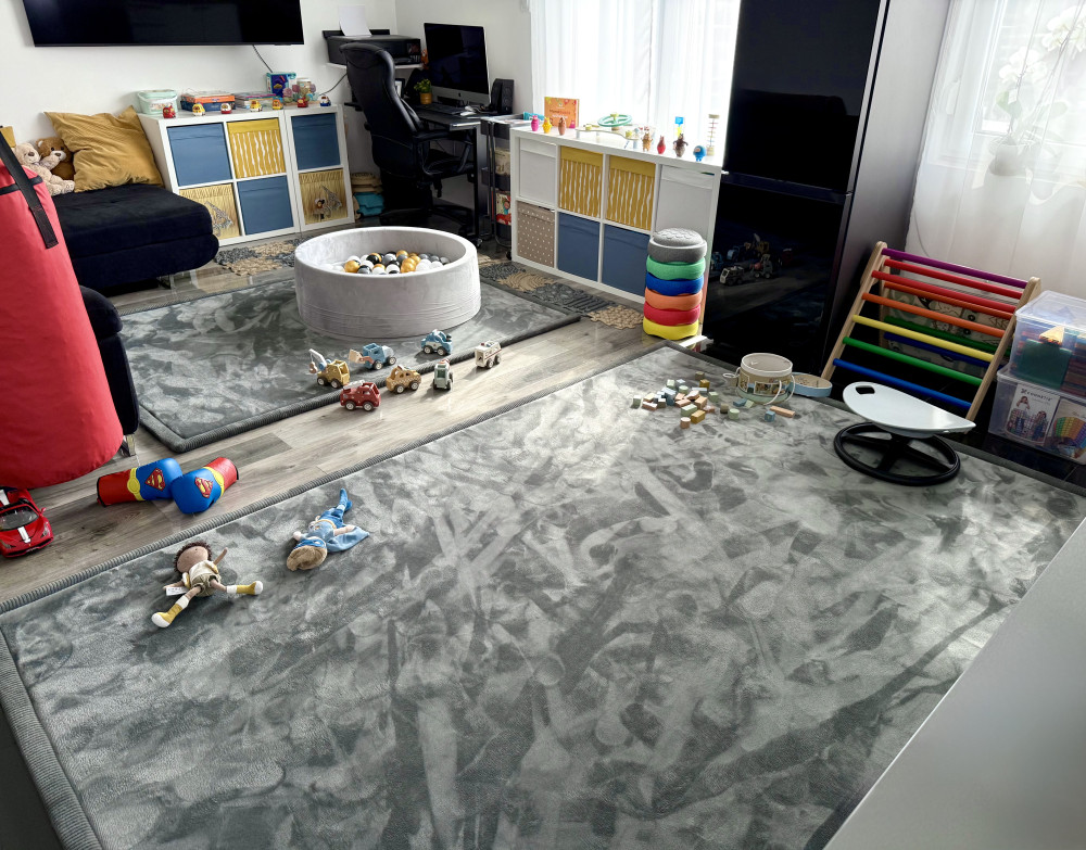 Tipp: A nagy méret (6 m²) miatt a szőnyeg "térbeli" mozgásra ösztönöz, nem korlátozza a kicsit egy kis járókába.