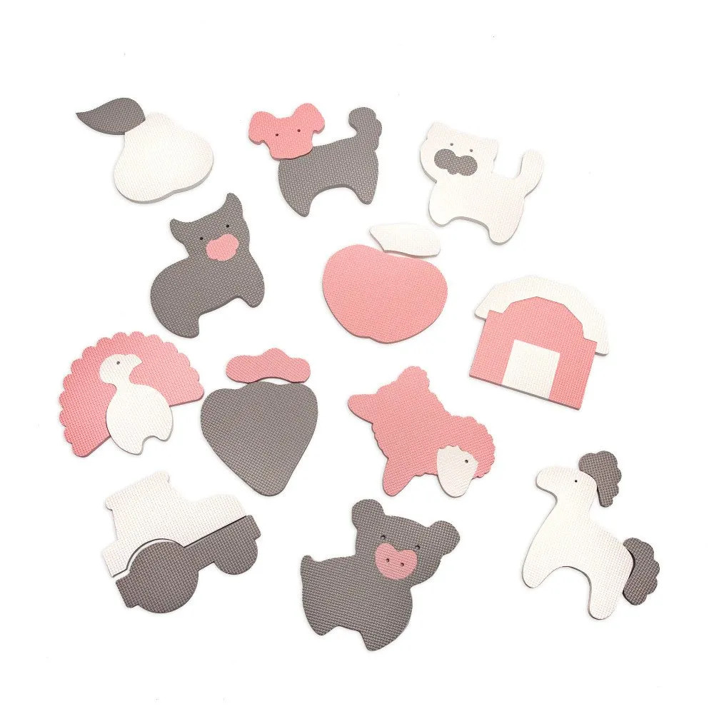 • Fejlesztő motívumok: A farmos állatok elősegítik a motoros készségek, a szín- és formafelismerés fejlődését.