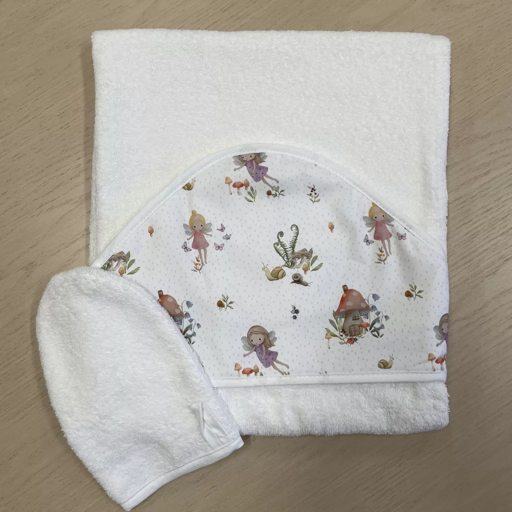 Happy kapucnis törölköző fürdőkesztyűvel - Tündérország