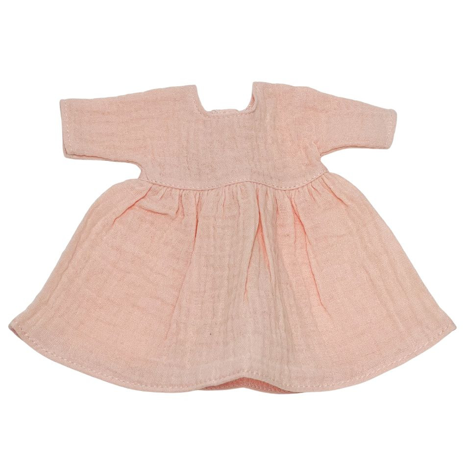 Képzeld el, ahogy a gyermeked babája ebben a muszlin ruhában indul egy képzeletbeli sétára vagy egy délutáni játékra a barátokkal. A könnyed anyag és a praktikus fazon miatt ez a darab gyorsan a kedvenc öltözékké válhat.
