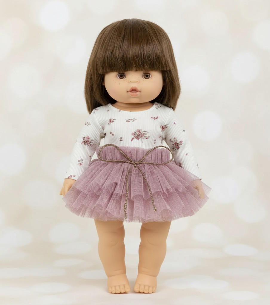 Ez a bájos ruhaszett kifejezetten Paola Reina Gordis és Minikane babákhoz készült. A könnyed tüllszoknya és a hozzá illő felső igazi öröm a kislányoknak, hiszen öltöztetés közben szabadon engedhetik a fantáziájukat. Könnyen feladható a babára, így a gyerekek önállóan is próbálkozhatnak vele, miközben fejlődik a kézügyességük és a kreativitásuk.