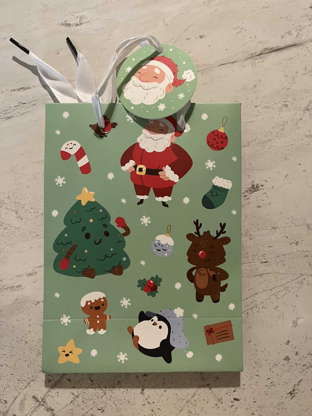 A karácsonyi ajándéktasak a legegyszerűbb és legkedvesebb módja, hogy az ajándékod igazán ünnepi hangulatban tündököljön. A vidám, zöld alapon mintás designon ott van a Mikulás, a rénszarvas, a pingvin és a karácsonyfa is – minden, ami a karácsony melegségét idézi. Az ajándékkísérő kártya már a fülre van erősítve, így csak egy üzenet hiányzik róla.