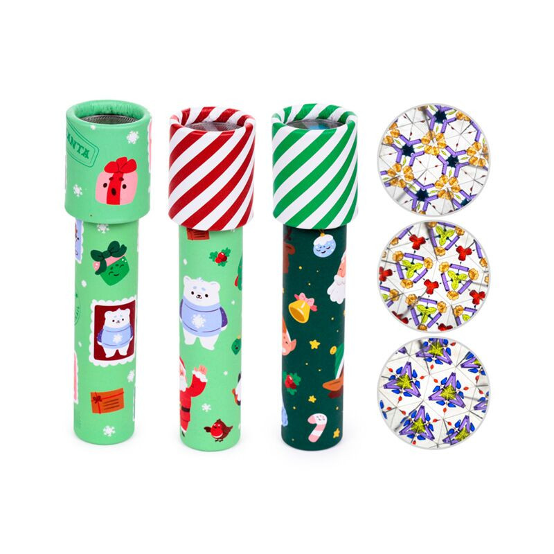 Karácsonyi délután, halk zene szól, a gyerekek nevetnek, és kíváncsian forgatják a kaleidoszkópot. Minden fordítás új mintát mutat – mintha apró karácsonyi csodák születnének benne. Egyszerű, mégis lenyűgöző játék, ami elvarázsolja a kicsiket.