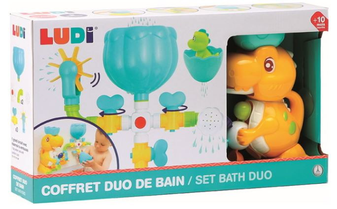 A LUDI dínós fürdőjáték készlet egy mosolygós dínót, spriccelős babadínót és egy izgalmasan variálható vízhálózatot rejt – hogy a pancsolás ne csak szórakoztató, hanem fejlesztő is legyen.