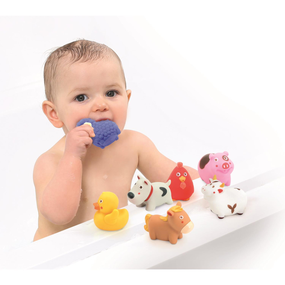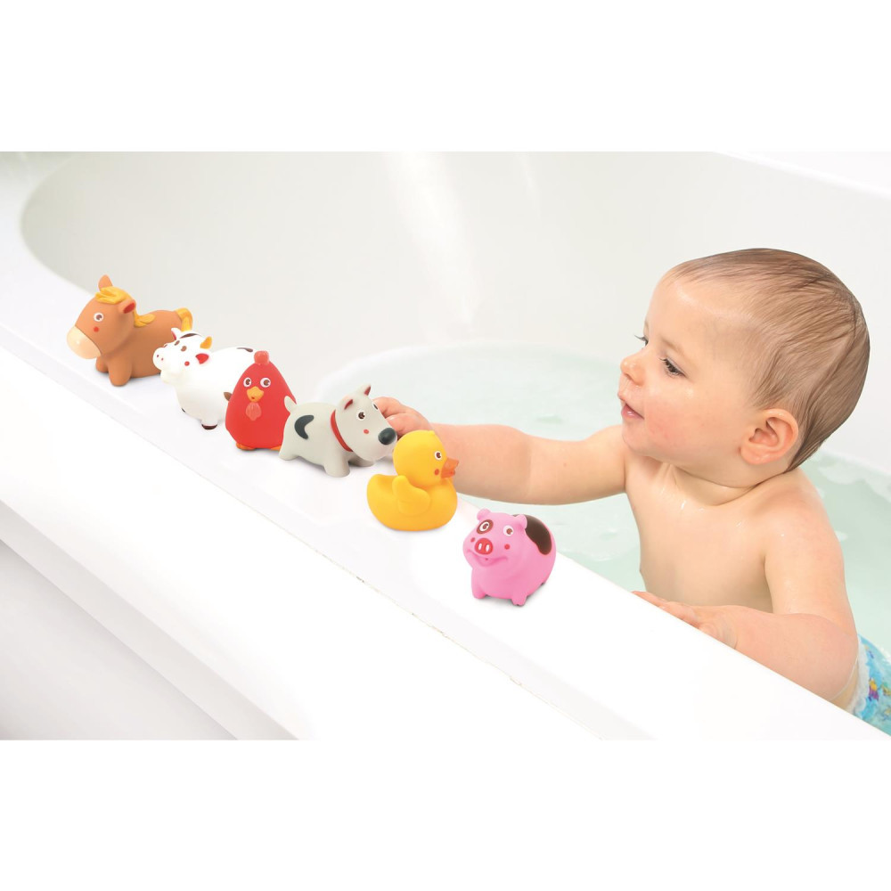 A LUDI Farm állatai fürdőjáték szett 7 kedves, színes figurát rejt, melyekkel a gyerekek örömmel pancsolnak, játszanak – vagy akár saját kis történeteket is eljátszanak velük a szobában.