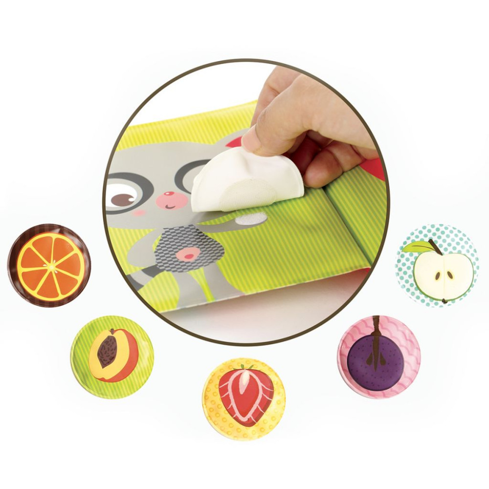 • Állatos-párosítós játék – A gyümölcsöket tépőzárral az adott állathoz rögzíthetitek