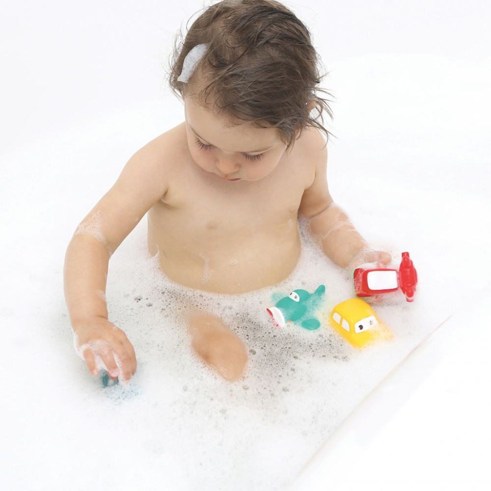 A LUDI járműves fürdőjáték készlet színes, puha és spriccel is – épp úgy, ahogy a gyerekek szeretik.