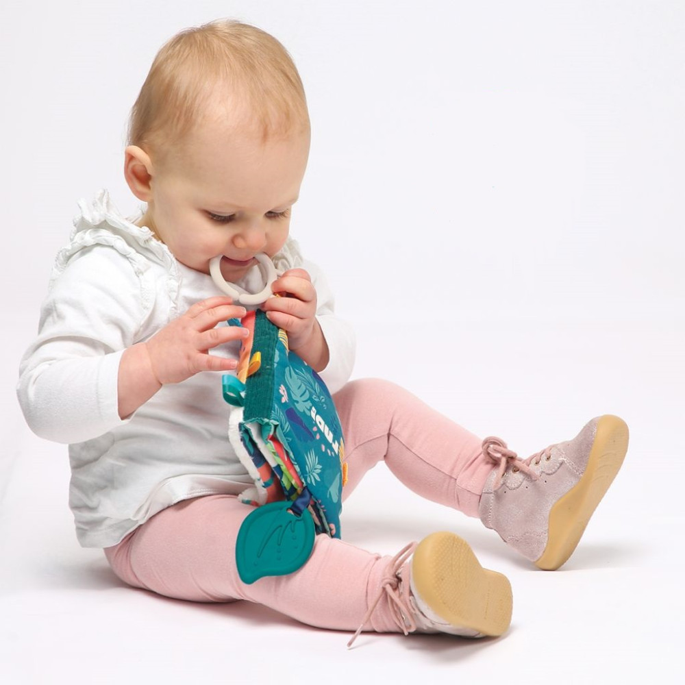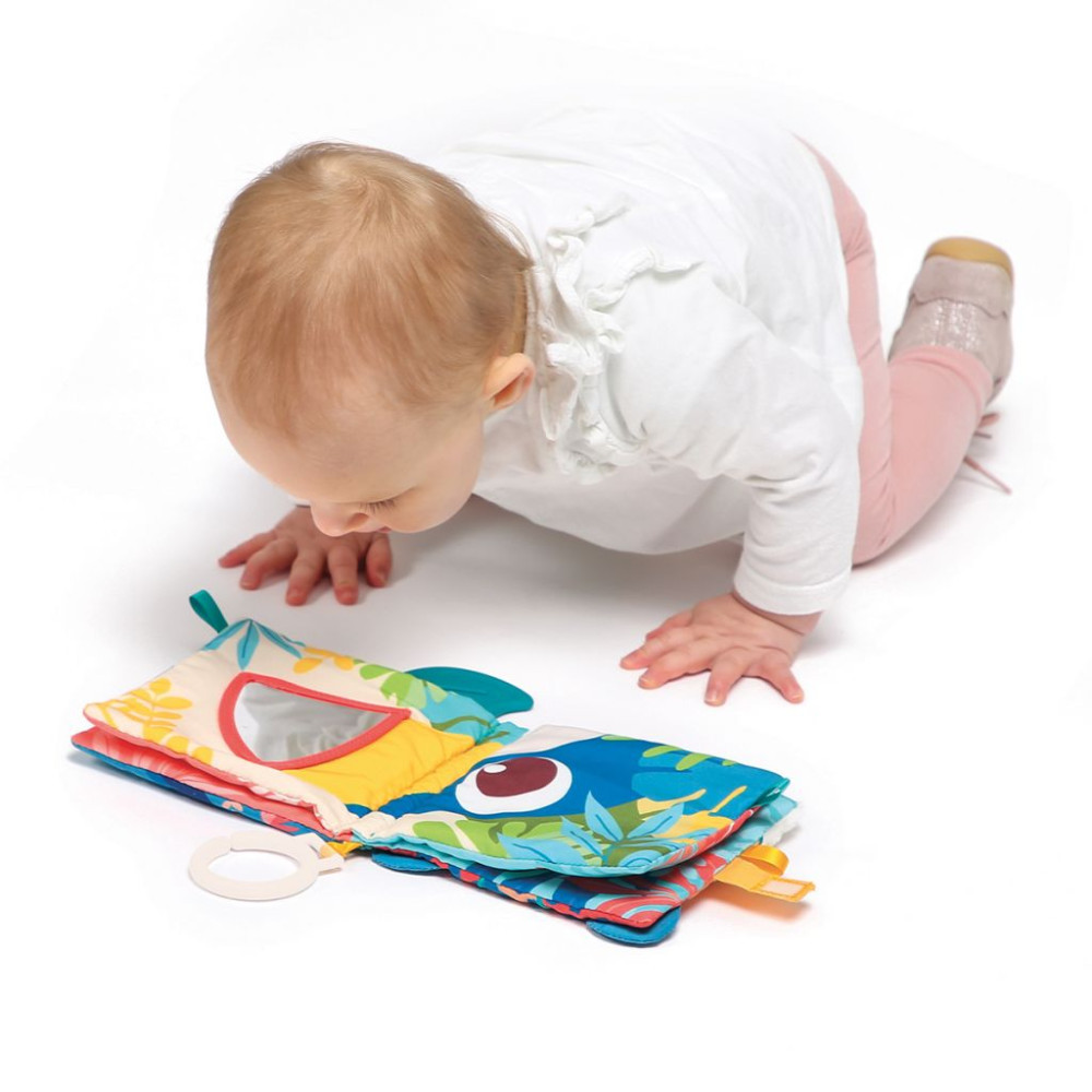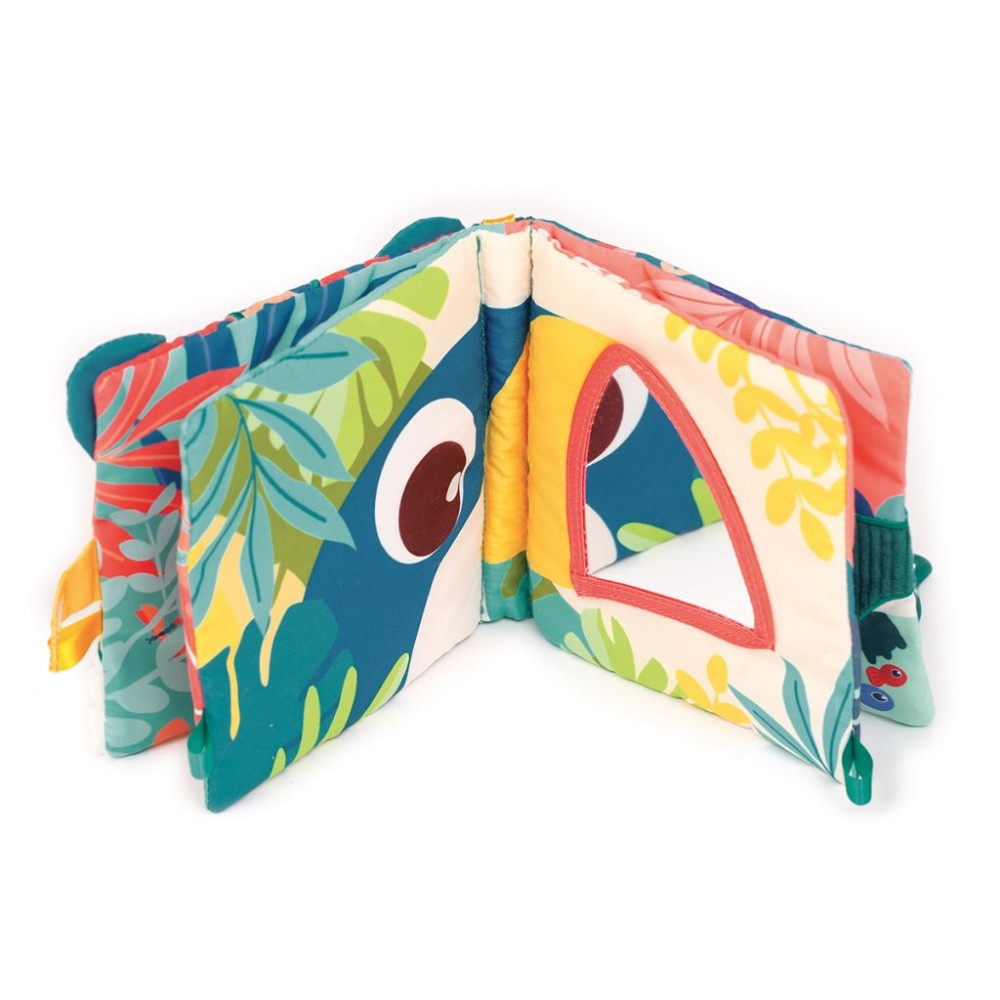Ez a dzsungel témájú babakönyv az a játék, amit újra és újra örömmel vesz kézbe a baba. Puha tapintású, színes és tele van meglepetésekkel – pont olyan, amitől egy kisgyerek kíváncsisága szárnyra kap. Egy jaguár pofi simogatásával kezdődik, aztán jön a tükrös tukán, a szilikon rágóka, a krokodil érdes bőre… minden oldal más-más élményt tartogat.