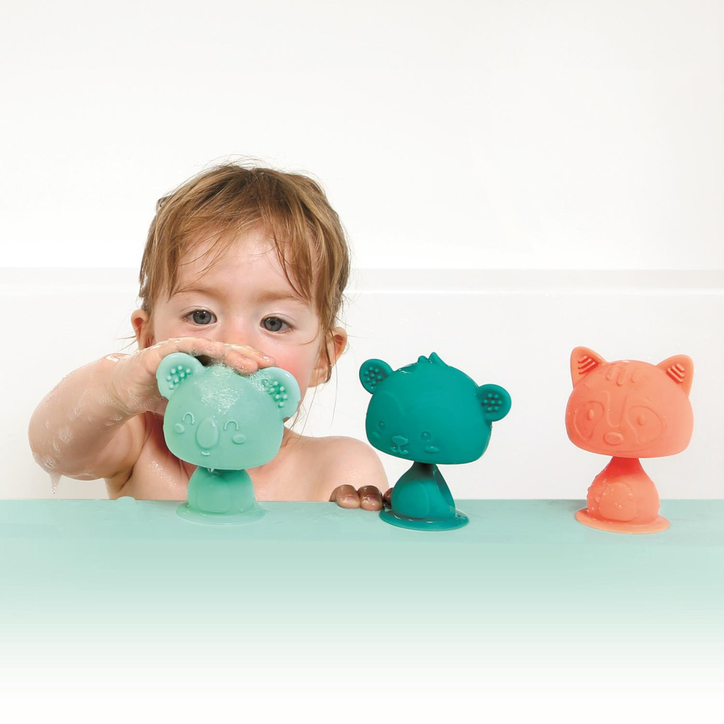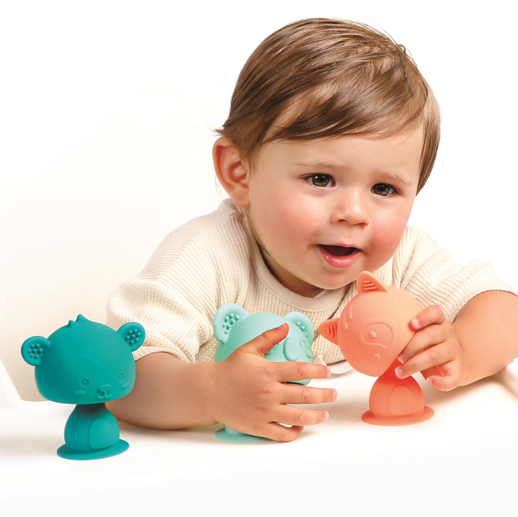 A koala, a cica és a mackó (vagy majmocska) alig várja a közös játékot. A figura teste rugalmas, így ha a baba meglöki, viccesen "bólogat" vagy kileng, majd visszatér eredeti helyzetébe. Ha pedig sikerül mégis felszedni a tapadókorongot, az egy vicces "pop" hanggal válik el a felülettől, ami garantált kuncogást vált ki a kicsikből. Kompakt mérete miatt bármelyik pelenkázótáskában elfér, így mindig kéznél lehet egy tiszta, biztonságos játék.