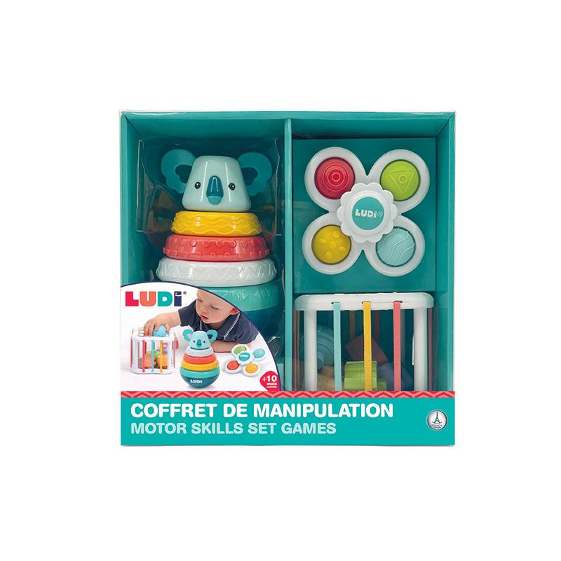 A LUDI felfedező készlet babáknak három különböző játékkal segíti a fejlődést már 10 hónapos kortól. A babapörgettyű, a koalás torony és a varázs kocka mind más-más készséget fejleszt – és közben garantált a szórakozás!