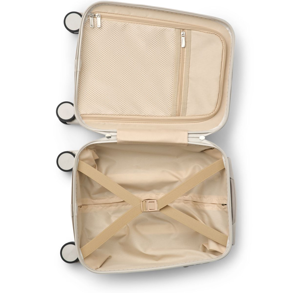 A NORELLE keményfedeles kabinbőrönd sokoldalú és stílusos útitárs a kis felfedezőknek: minden belefér, ami egy hétvégi kiruccanáshoz vagy családi látogatáshoz szükséges, és a repülőgép fedélzeti csomagtartójába is kényelmesen elfér. A teleszkópos fogantyú és a 360°-ban forgatható kerekek könnyű manőverezést biztosítanak, míg az időtlen dizájn garantálja, hogy gyermeked stílusosan utazzon.