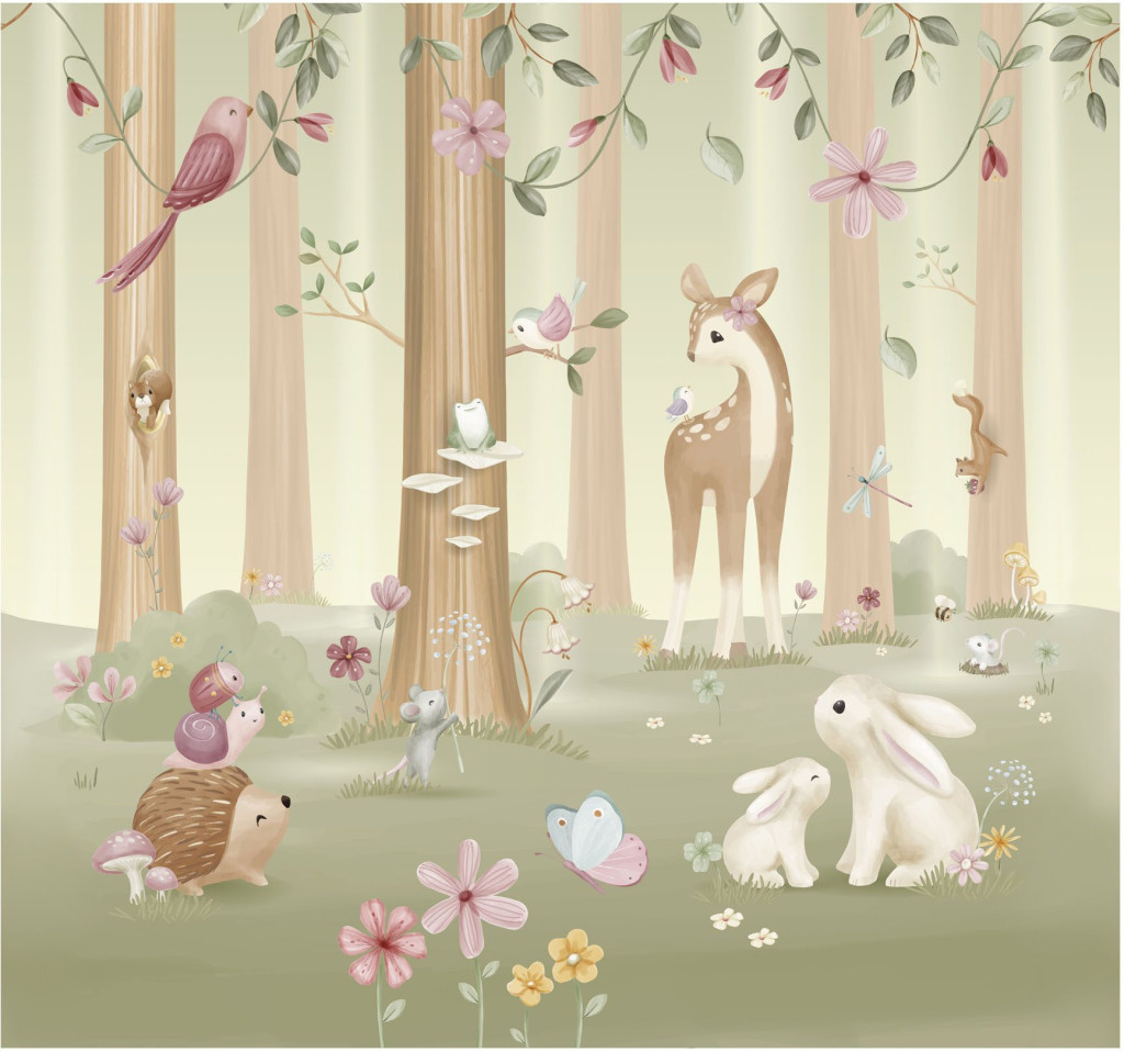 Képzeld el, ahogy a kicsi reggelente új részleteket fedez fel: a szarvas mellett bájos nyuszik, sünik és madarak bukkannak fel a virágok között. A Little Dutch fotótapéta Fairy Garden lágy színei megnyugtatják a szobát, miközben elég játékosak ahhoz, hogy beindítsák a fantáziát. Egy szerethető háttér, ami hosszú távon is örömet ad.