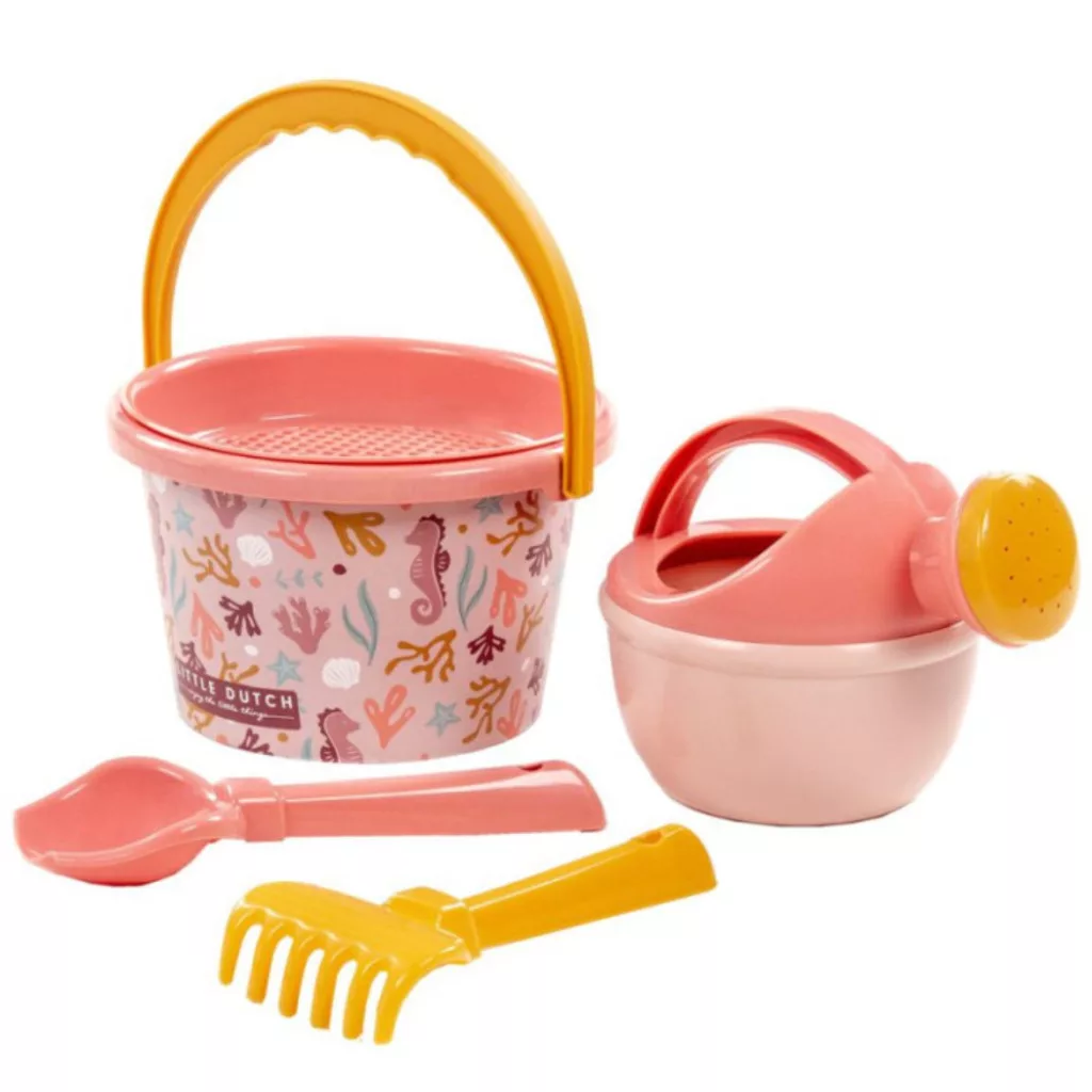A Little Dutch Homokozó Készlet Ocean Dreams Pink változatával a lányok is felfedezhetik a tengeri kalandokat, miközben a homokozóban játszanak. A rózsaszín és sárga színkombináció, valamint a tengeri inspirálta dizájn egyedi és csajos hangulatot visz a homokozó játékok közé.