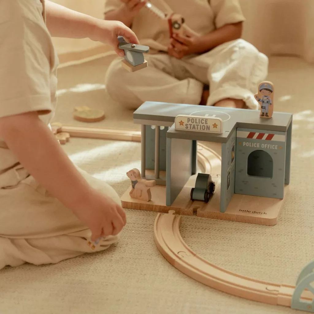 A Little Dutch rendőrős játéka egyszerre fejlesztő és szórakoztató: bátor történeteket hív életre, miközben a gyerekek képzelete szárnyalhat.