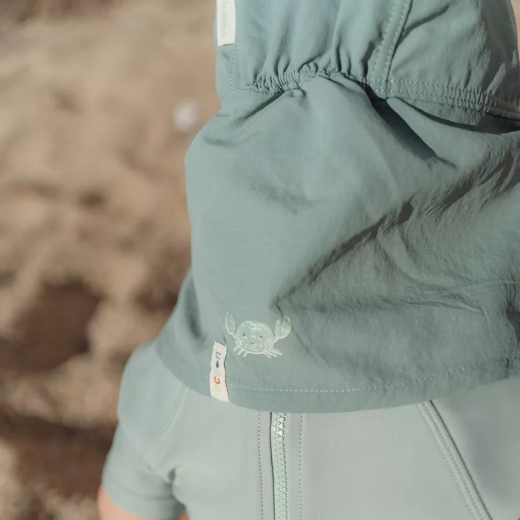 Rettegsz, hogy a vízparti játék közben észrevétlenül leég a kicsi érzékeny bőre? A folyamatos naptejezés sokszor nem elég, a hagyományos nyári kalapok pedig az első vizes ugrásnál lerepülnek a fejről. A Little Dutch Ocean Green strand sapka a tökéletes pajzs a káros sugarak ellen, amellyel végre te is nyugodtan hátradőlhetsz, miközben gyermeked felszabadultan és maximális biztonságban fedezi fel a nyarat.