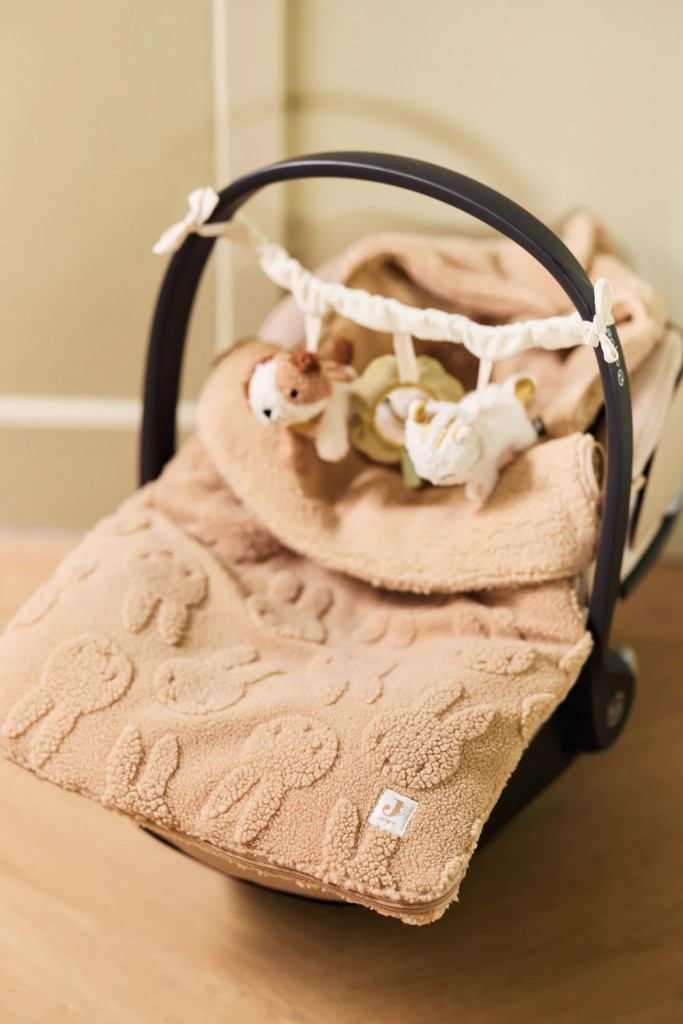 A Jollein Miffy Jacquard kocsitakaró tökéletes választás, ha szeretnéd, hogy a baba minden úton melegen és kényelmesen pihenjen. A biszkvit színű jacquard anyag kedves, domború Miffy mintáival azonnal mosolyt csal az arcra, míg a belső teddy bélés puha, meleg védelmet nyújt a hűvös napokon. Praktikus, stílusos és biztonságos – igazi kedvenc lesz a babakocsiban vagy az autós hordozóban.