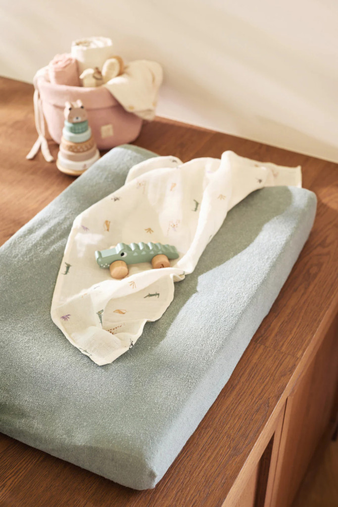 Szakértői tipp: A frottír anyaga kiválóan felszívja a nedvességet, így a baba mindig szárazon marad. A tengerzöld szín pedig nyugtató hatású, segít megteremteni a békés hangulatot a pelenkázás során.