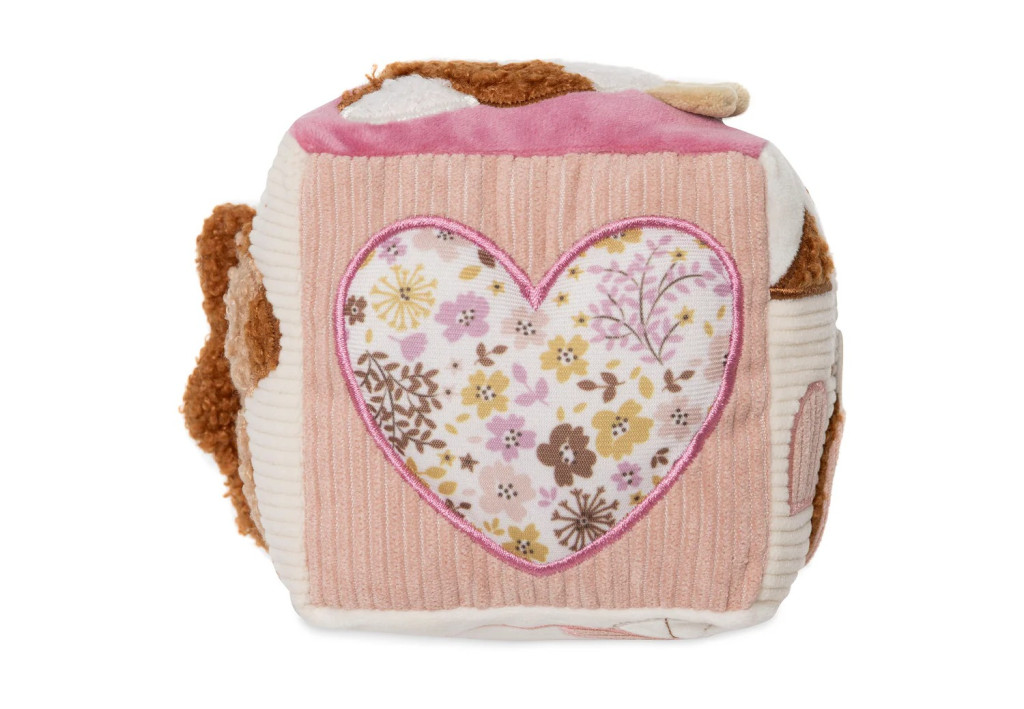 • Funkciók: tükör, nyitható ajtók, rágóka, szív alakú függő játék, zörgő és címkés részek, kis zsebek