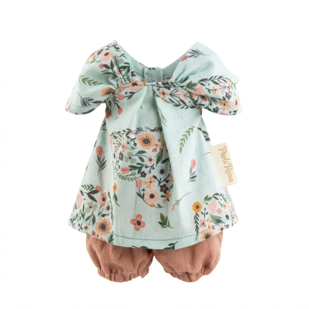 Úgy érzed kedvenc babád ruhatára ráférne egy kis felfrissítésre és valami igazán élettel teli darabot keresel? A stílusos és változatos ruhatár elengedhetetlen a kreatív szerepjátékhoz hiszen egy új szett teljesen új történeteket hív életre a gyerekszobában. Ez a Paola Reina mentaszínű virágos felső és a hozzá illő terrakotta puffos nadrág azonnal friss és természetes megjelenést kölcsönöz a 32 cm-es Amigas babáknak legyen szó egy képzeletbeli kerti partiról vagy egy napsütötte délutáni sétáról.