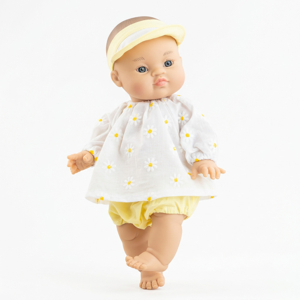Képzeld el, ahogy a gyerkőcöd leül a szőnyegre, és elmélyülten igazgatja Johana apró margarétás ruhácskáját, miközben halkan duruzsol neki. Ez a baba nemcsak egy tárgy, hanem a szerepjátékok főszereplője, aki segít feldolgozni a napi eseményeket és fejleszti az empátiát. Johana haja fésülhető, teste pedig könnyen tisztítható, így a homokozós kalandok után is hamar újjávarázsolható.