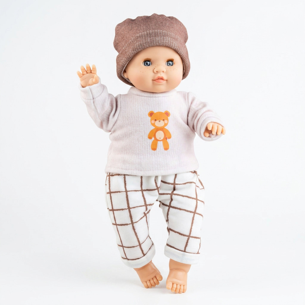 • pipa Stílusos spanyol design: A baba egyedi medvés pulóverben és kockás nadrágban érkezik, amely tükrözi a 25 éves spanyol gyártói szaktudást.