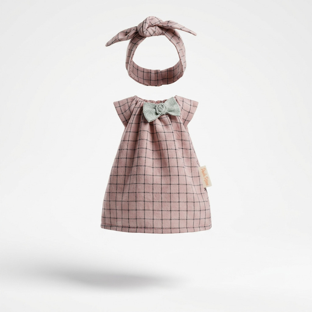 • A szett tartalma: 1 db kockás ruha és 1 db masnis hajpánt