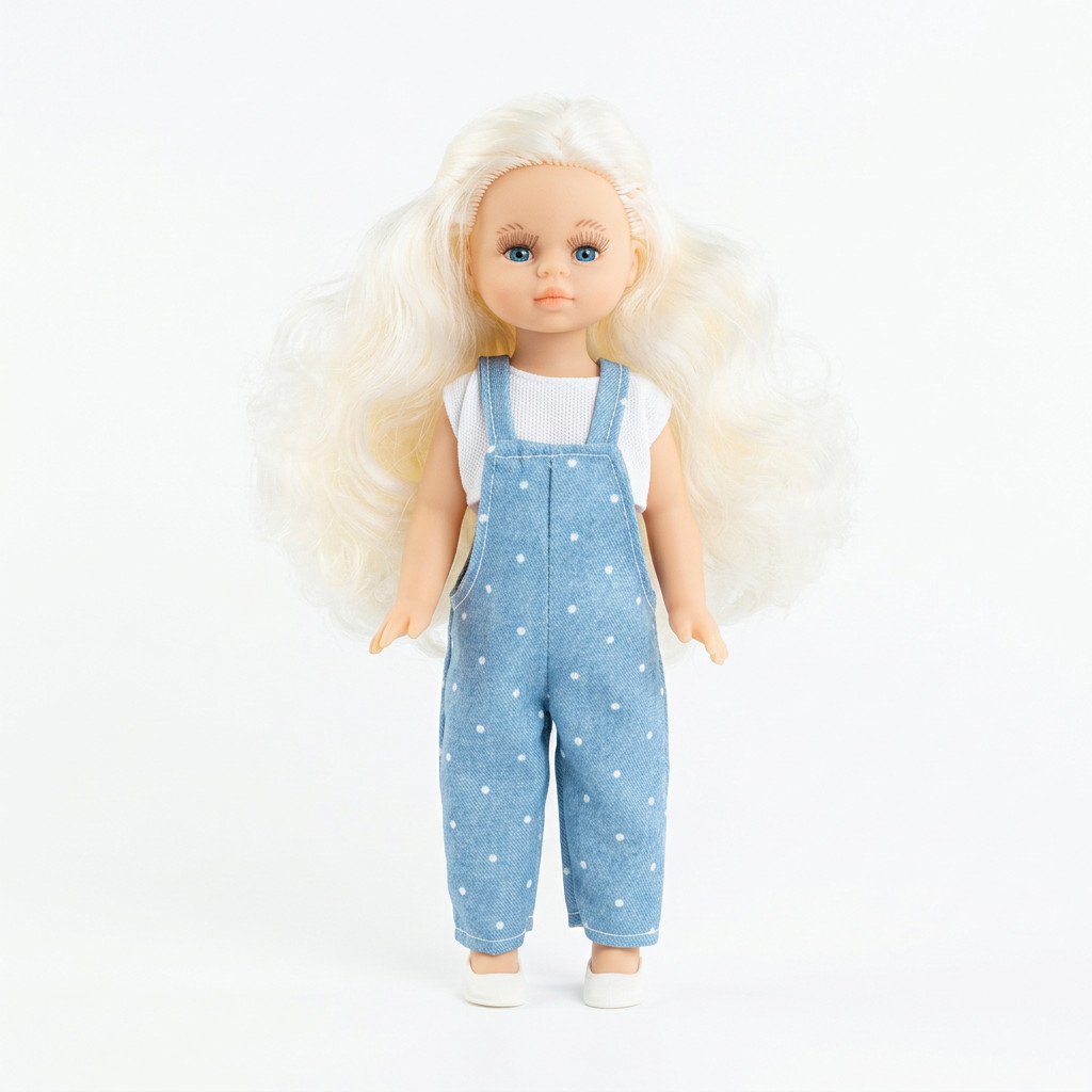 Amint a kezedbe veszed ezt a kis babát, azonnal érezni fogod a prémium spanyol kézműves munka minőségét és a vinyl selymességét. Noelia hófehér haja és kék pöttyös nadrágja egy olyan időtlen eleganciát sugároz, amely minden gyerekszoba díszévé teszi őt. A baba élethű, fix kék szemei és gondosan megfestett arca miatt a gyerekek valódi társként tekintenek rá. Remekül passzol a kínálatunkban található puha babaágyneműkhöz és kiegészítőkhöz is.