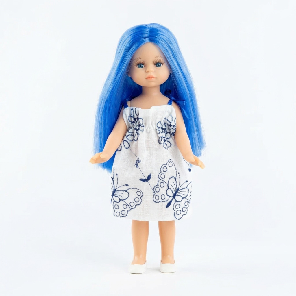 Amint megérinted Valeria hosszú kék haját, azonnal érezni fogod a prémium spanyol minőség selymességét. A baba vinyl teste puha tapintású és strapabíró, így a legintenzívebb játékot is jól bírja. A kék pillangós minta és a masnik olyan harmóniát sugároznak, amely azonnal feldobja a gyerekszoba hangulatát. Tökéletesen passzol a Little Dutch fa kiegészítőinkhez, például egy mini babakocsihoz, amiben Valeria büszkén fedezheti fel a lakás minden sarkát.