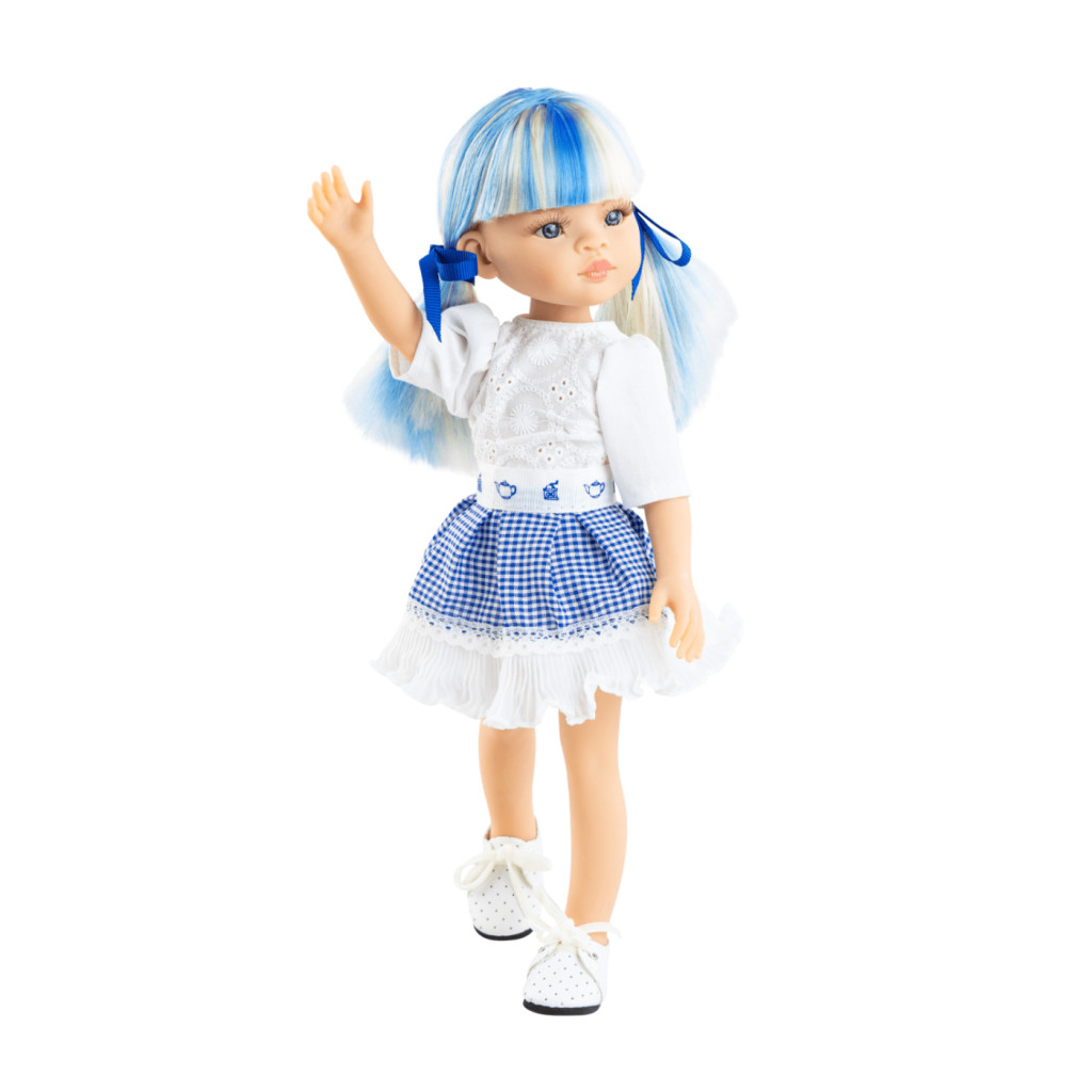 Sokszor érzed úgy, hogy a játékboltok polcai tele vannak egyforma és unalmas babákkal, amik nem mozgatják meg a gyermeked fantáziáját? A Paola Reina Funky Cassandra szakít a hagyományokkal: extravagáns kék-szőke melírozott hajával és modern stílusával azonnal kiemeli a kicsiket a szürke hétköznapokból miközben biztonságos kaput nyit az önkifejezés és a kreatív szerepjátékok világába.