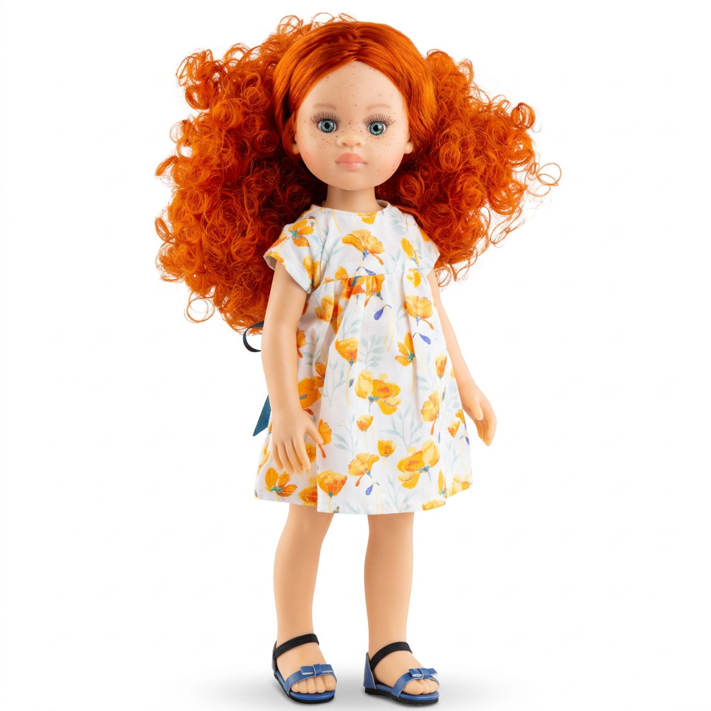 Képzeld el, ahogy gyermeked csillogó szemekkel öleli magához új barátnőjét, akinek finom illata betölti a gyerekszobát. Virgi stílusos, pipacsos nyári ruhája és kék szandálja azonnal játékra hív. A fésülhető, göndör vörös haj és az öltöztethető test számtalan kreatív órát ígér, legyen szó egy délutáni teadélutánról vagy egy közös sétáról. Ez a baba nem csupán egy tárgy, hanem egy hűséges társ, aki segít megélni és feldolgozni a mindennapi érzelmeket.