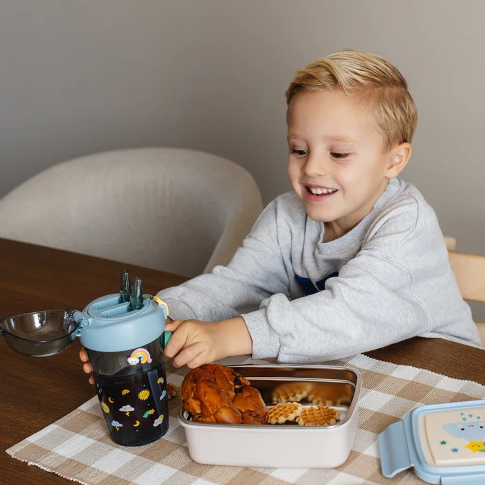 A Petit Monkey dupla ízű kulacs megoldja azt a kis mindennapi harcot, amikor „én most narancslevet akarok… vagy inkább almalevet?”. Itt nem kell választani: a két rekeszbe kétféle ital is kerülhet – külön-külön, mégis együtt. Így a kicsi bármikor azt kortyolhat, amihez épp kedve van, te pedig nyugodt lehetsz, hogy elegendőt iszik.
