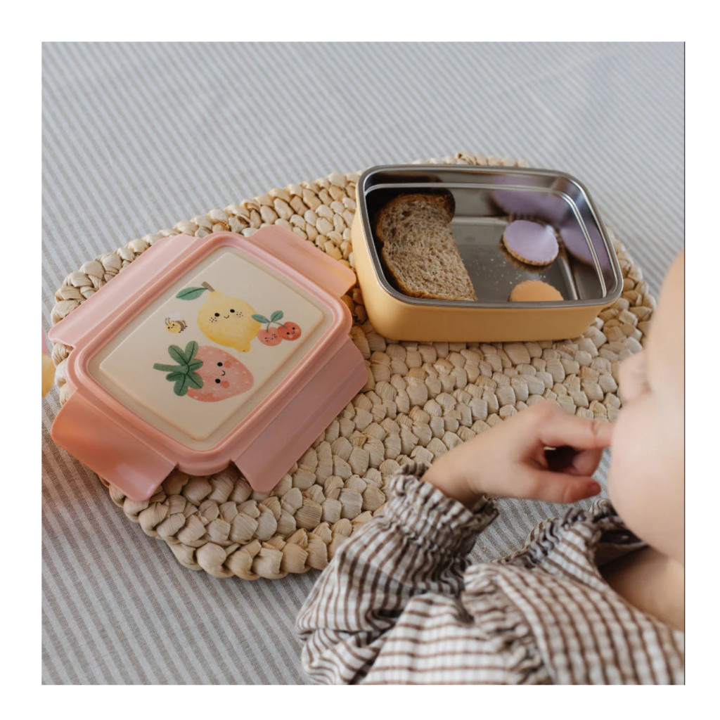 Már az első érintésnél érezni fogod a minőségi különbséget: a Sparkling Fruits doboz fedele finom matt bevonatot kapott, ami nem csúszik a kis kezekben sem. A hűvös acél belső tisztasága és a lágy rózsaszín tónusok harmóniája minden szünetben egy kis örömet csempész az óvodai vagy iskolai hétköznapokba. Fesd le gyermekednek, ahogy a kis méhecske őrzi az epret és a citromot a doboz tetején, így még a zöldségek elfogyasztása is játékos kaland lesz!