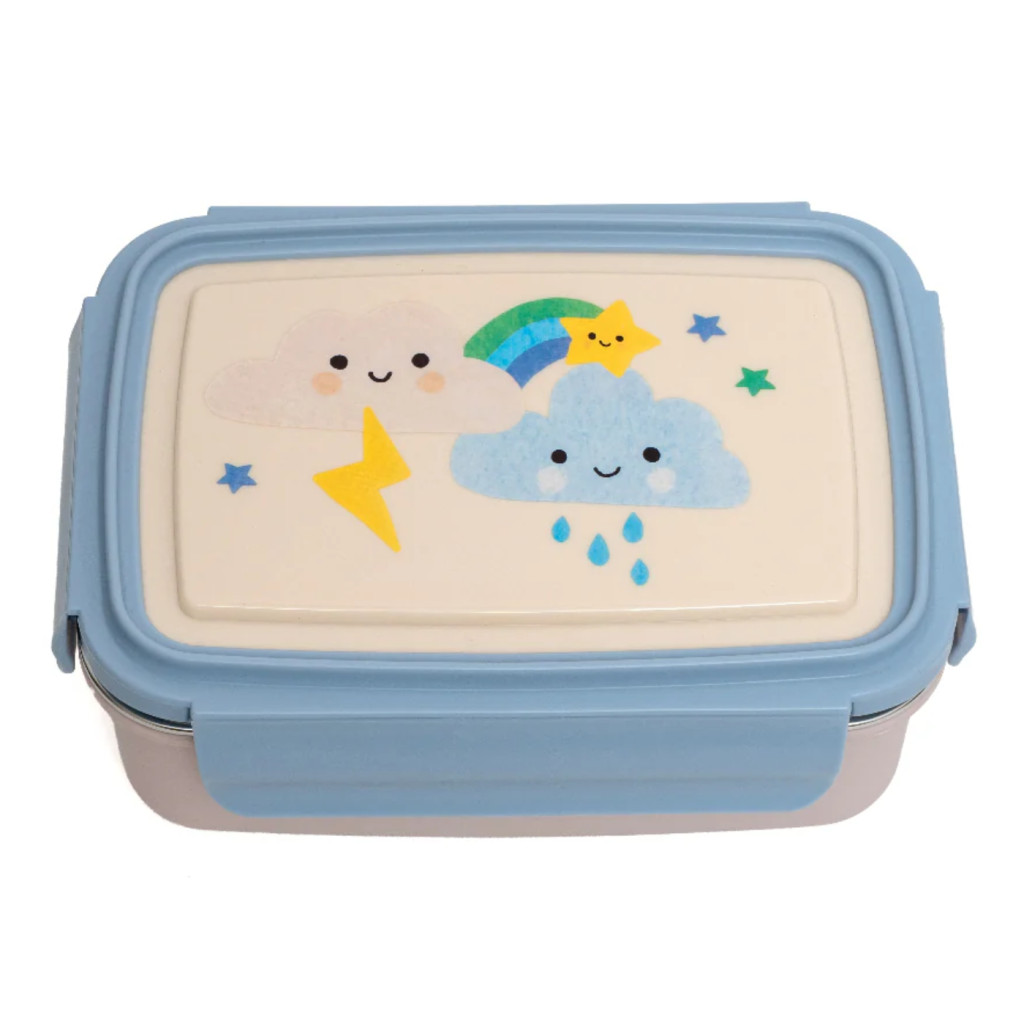 Te is unod már a táska alján árválkodó összenyomódott szendvicseket és a műanyag szagú tízórait? Szülőként fontos hogy az étel ne csak egészséges de hívogató is maradjon a nap végéig. A Petit Monkey Sparkling Sky bento doboz rozsdamentes acél belseje garantálja a tökéletes frissességet és higiéniát miközben a mosolygó felhők és a színes szivárvány minden uzsonnaszünetet varázslatossá tesz.